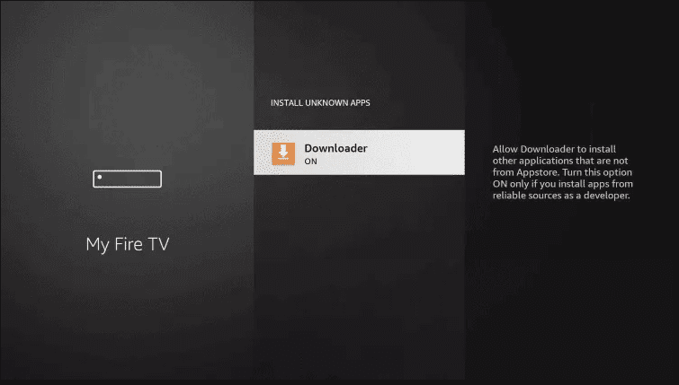 12. This will turn Unknown Sources to On for the Downloader app. This will enable side-loading on your device.